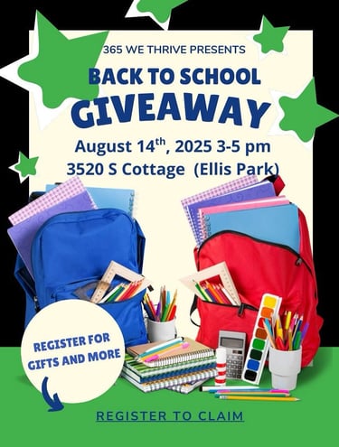 Since launching in April 2025, 365 We Thrive has delivered integrated, trauma-informed programming designed to strengthen community safety, stabilize families, expand economic opportunity, and elevate youth leadership across underserved Chicago communities. Our model addresses social determinants of health by integrating stabilization, workforce development, educational engagement, and community-based leadership cultivation to support long-term social and economic mobility.